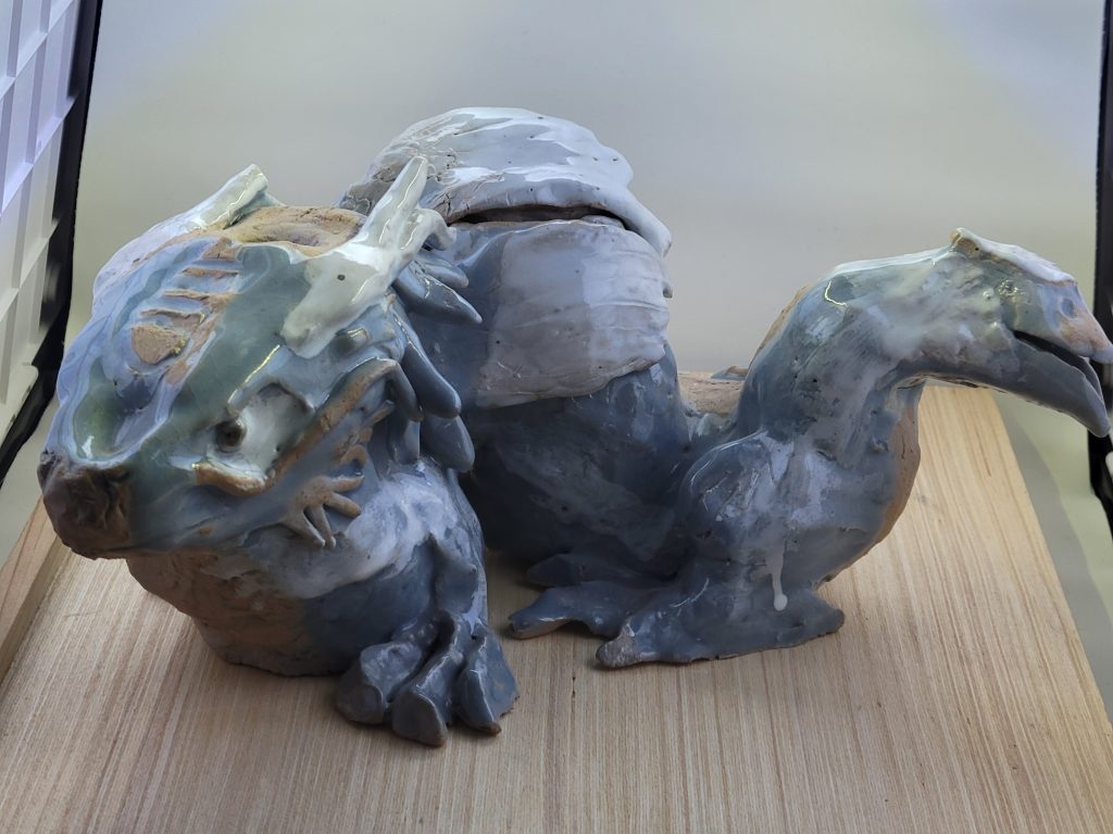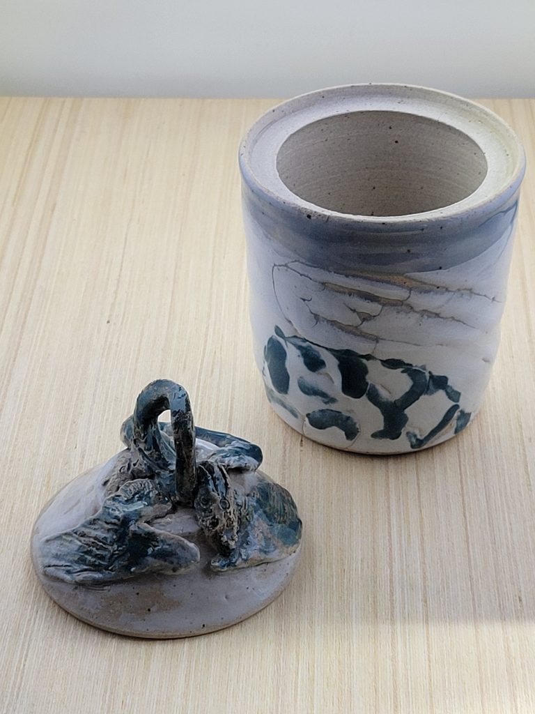 Pottery A selection of pottery from small hand built sculptural pieces to spun functional pieces. Feel free to peruse and inquire. Red with egghel bowlRibbon Line Lidded PotFour Directions MugRobin’s Egg potRobin’s Egg BowlBlack and coppery bowlWhistling Black and Coppery PotSmall Whistling Mixed Clay PotWhistling Mixed Clay PotSorrowful TeacupRed drif big green mug Tiny Lidded Pot Small black and coppery pot Small Lidded Pot Lidded Dragon PotSculptural BowlDragon TeapotTeapot in Green and RedPhoenix Ablaze in its Nest Explore: Art Skip back to main navigation